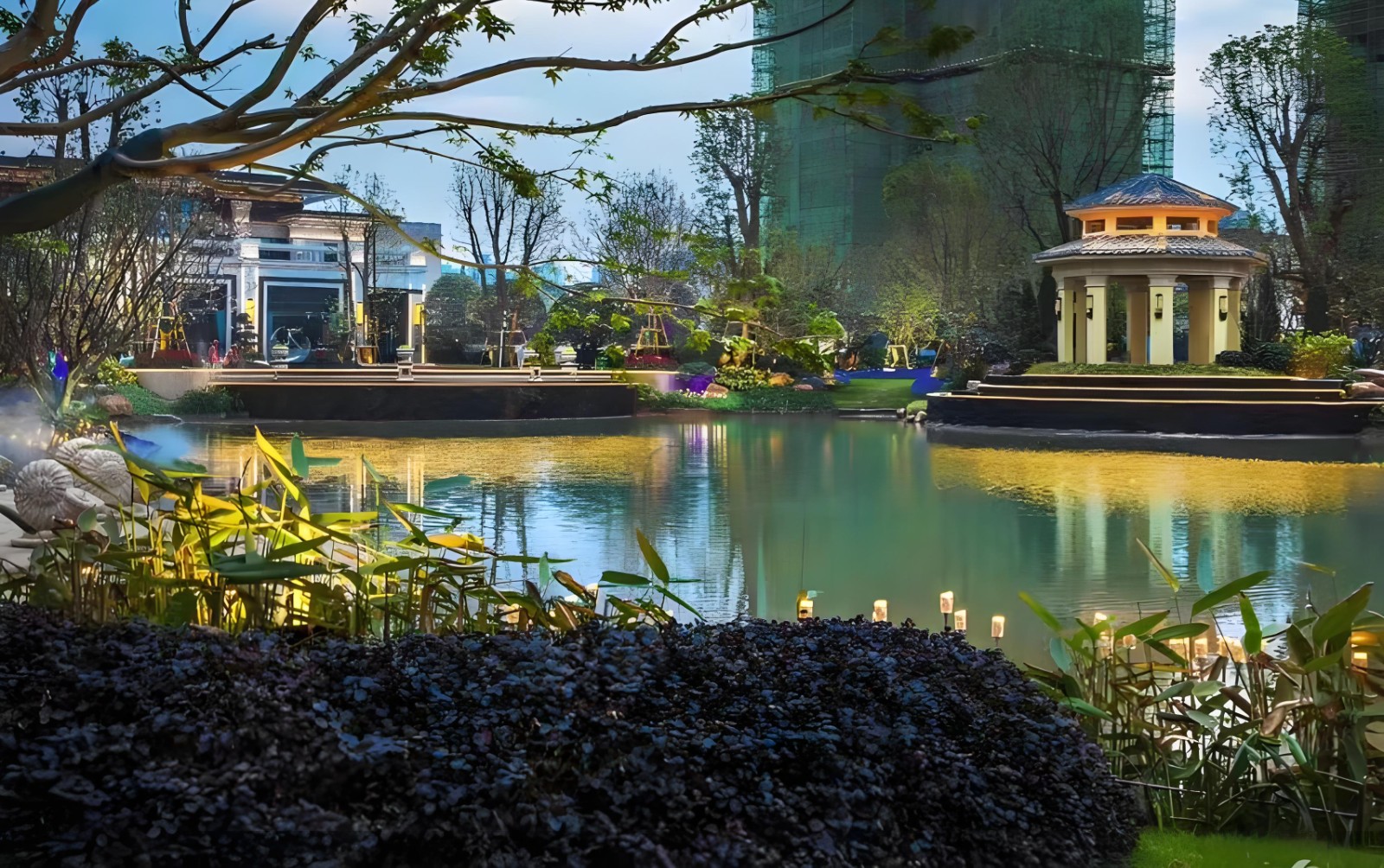 园林 项目内拥约6万㎡欧式五大主题园林,设计精妙,在水、石、花、木、路的起承转合中,实现建筑和环境的自然融合,营造四季不同的景观体验,打造城芯之上的诗意氧居生活。