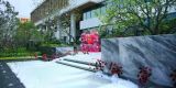 约165米宽奢门庭:极具辨识度的金色屋檐搭配高端石材照壁,营造宾至如归的至尊礼遇。